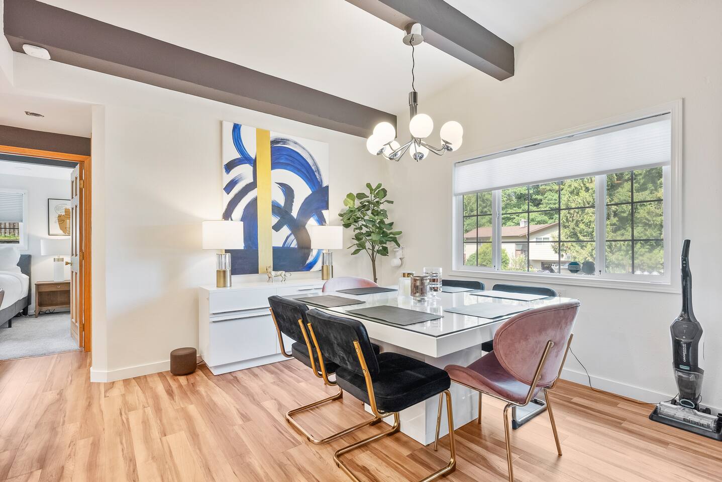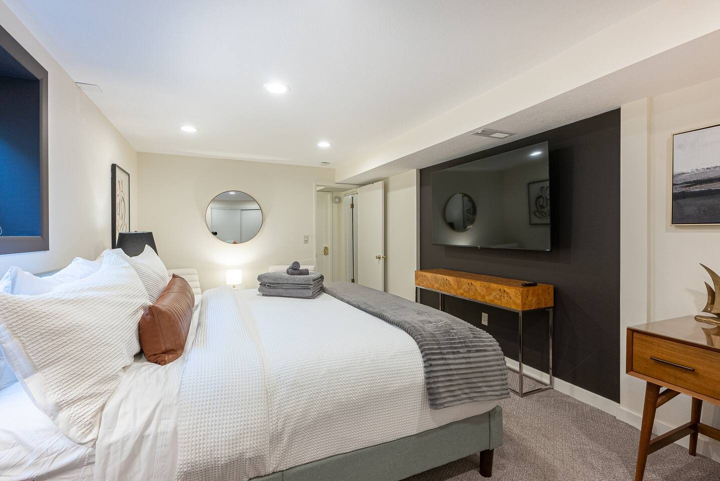 This house was great as it accommodated 8 of us easily. Beds were big and very comfortable. It is very updated but a strong 70s vibe and neighborhood. Kitchen was well equipped but we ate in shifts as table seats 6. Our teen/20+ age kids absolutely loved the game room in basement and my husband loved the sauna. Felt safe and found nearby walking path we used in mornings.